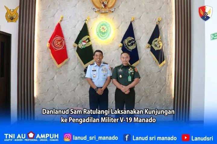 Infopubliknews.online Manado, 13 Januari 2026 -Danlanud Sam Ratulangi, Kolonel Pnb Yoyon Kuscahyono, S.Sos., melaksanakan kunjungan silaturahmi ke Pengadilan Militer V-19 Manado. Kunjungan ini bertujuan mempererat hubungan kelembagaan dan meningkatkan komunikasi serta koordinasi antara TNI Angkatan Udara dengan Pengadilan Militer V-19 Manado.