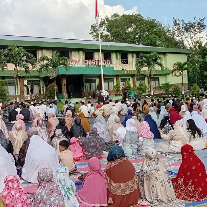 Infopubliknews.online MANADO, SATURDAY (21/03/2026) – Komandan Kodim 1309/Manado Kolonel Arh Yosip Brozti Dadi, S.E., M.Tr (Han) bersama rombongan personel, tokoh agama, serta elemen masyarakat melaksanakan Shalat Idul Fitri 1 Syawal 1447 Hijrah di Lapangan Makodim 1309/Manado.